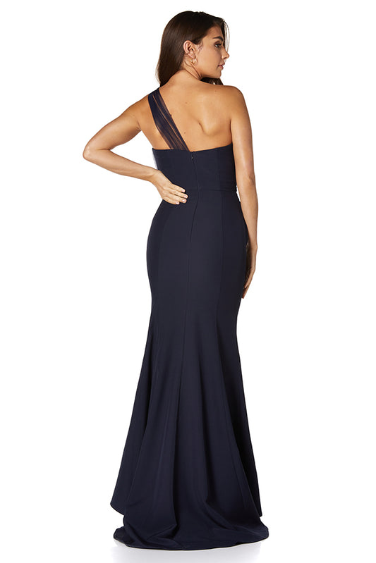Brooke One Shoulder Tulle Top Maxi Dress with Thigh Split