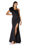 Eden Front Ruffle One Shoulder Scuba Maxi Dress With Thigh Split