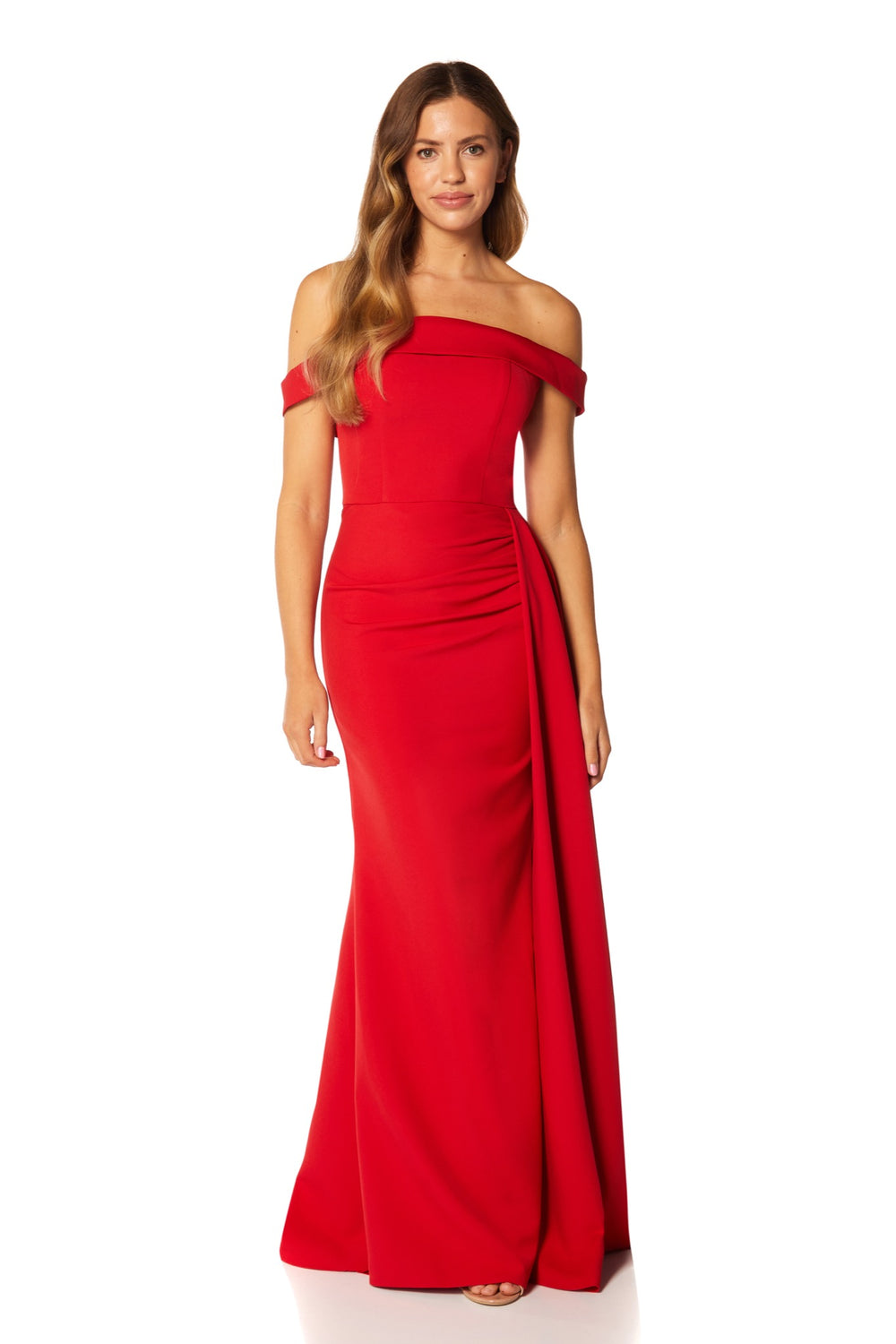 Monica Off Shoulder Maxi Dress Pleated Side Skirt Drape